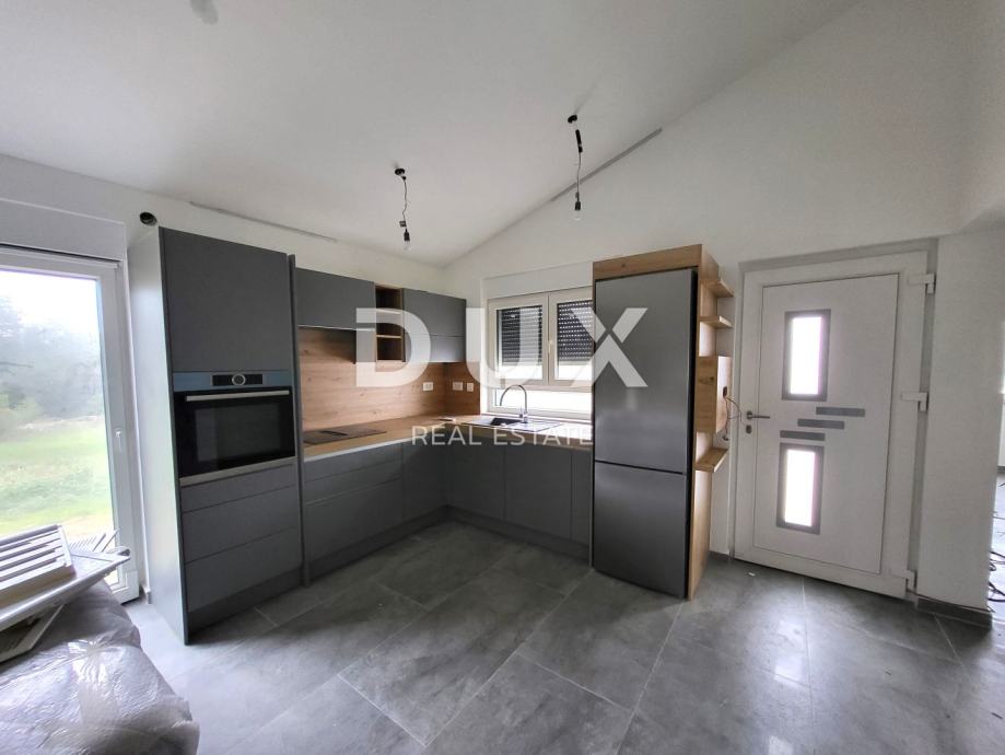 Nedaleko Tinjana, na prodaju je prizemnica površine 110m2 koja se sastoji od dnevnog boravka, blagovaonice, kuhinje, 3 spavaće sobe i 2 kupaonice. Iz dnevnog boravka i blagovaonice izlazi se direktno na natkrivenu terasu. Objekt je klimatiziran i opremljen podnim grijanjem.