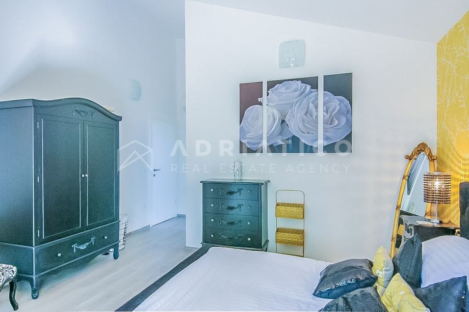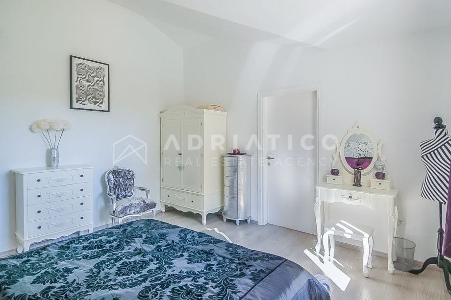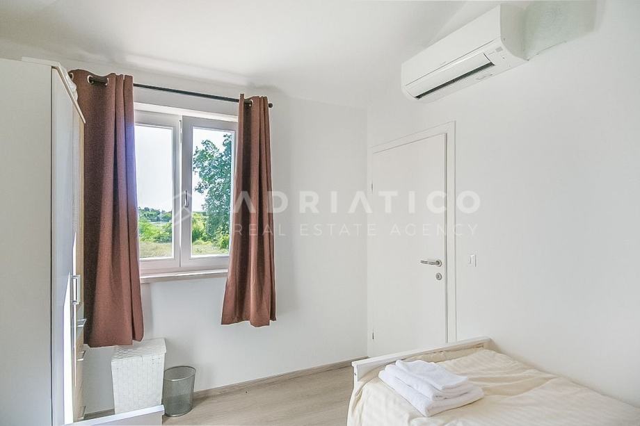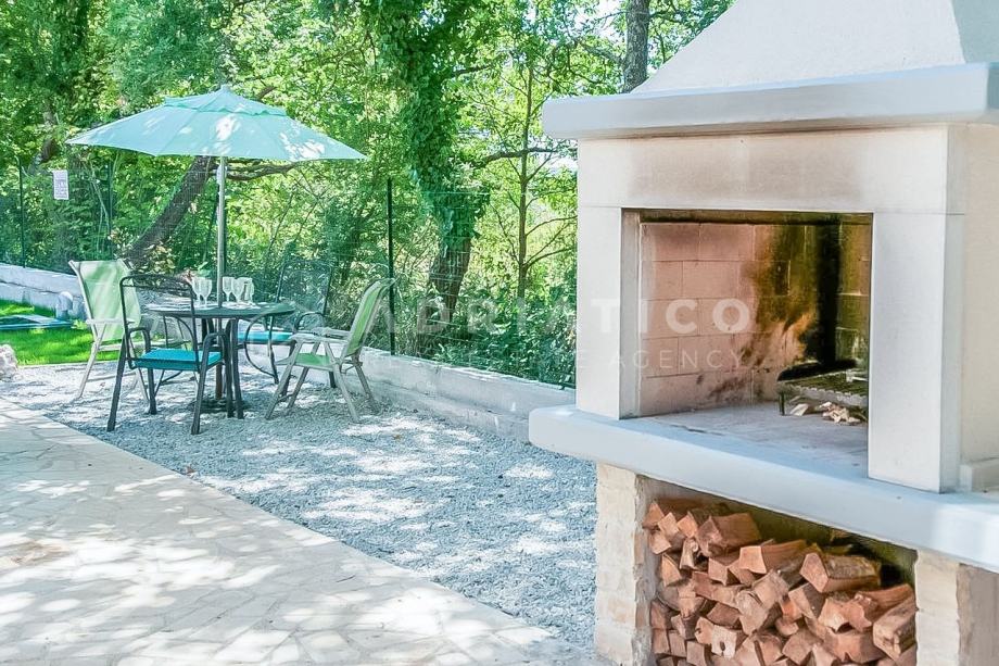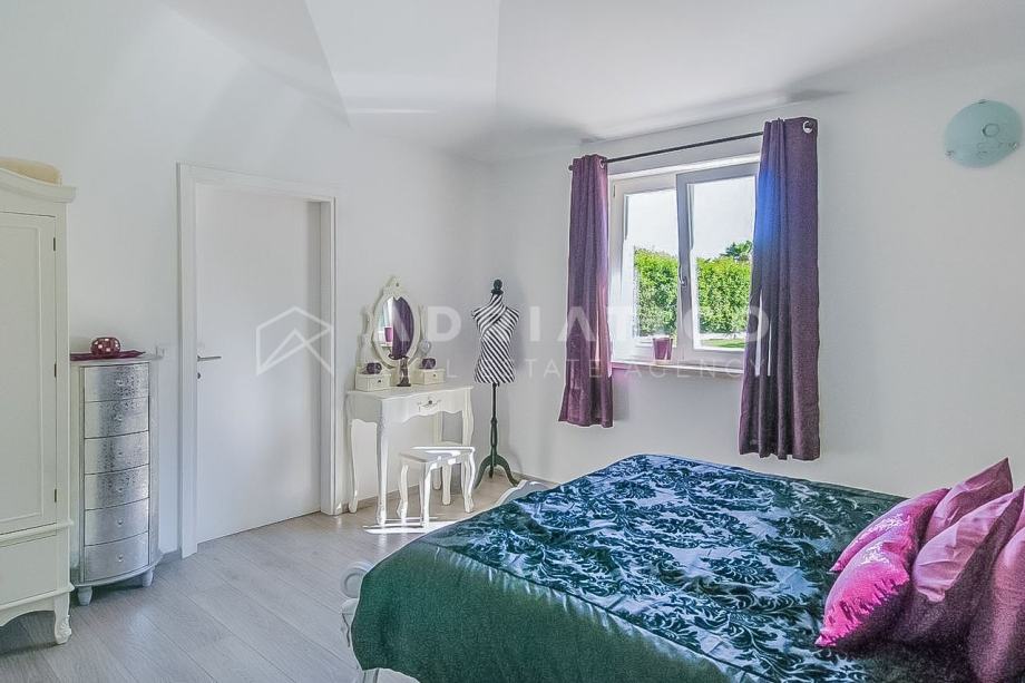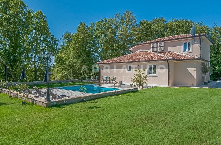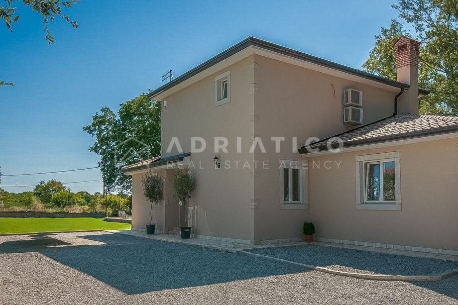 Okućnica uključuje bazen od 22 m², sunčalište i vanjsku kuhinju, idealne za uživanje na otvorenom. Kuća je klimatizirana, a lokacija na rubu naselja pruža mir, dok okolne nove vile stvaraju ugodan susjedski ambijent.