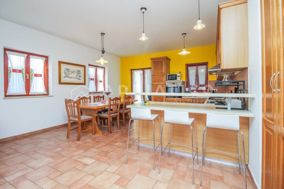 Ova nekretnina jeizgrađena 2010. godine, odiše tradicionalnim istarskim stilom te se prostire na uređenoj okućnici od 800 m² koja pruža privatnost i potpuni mir.