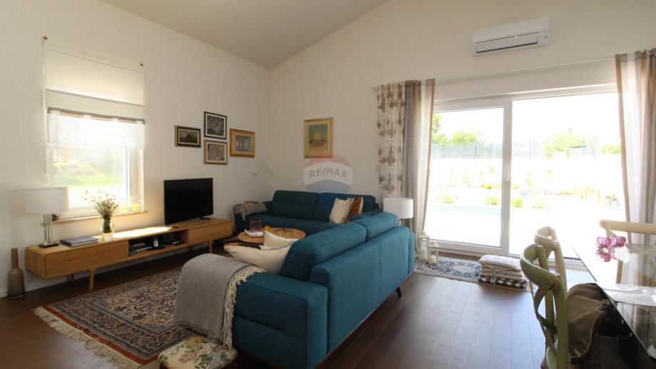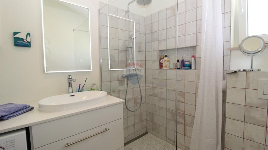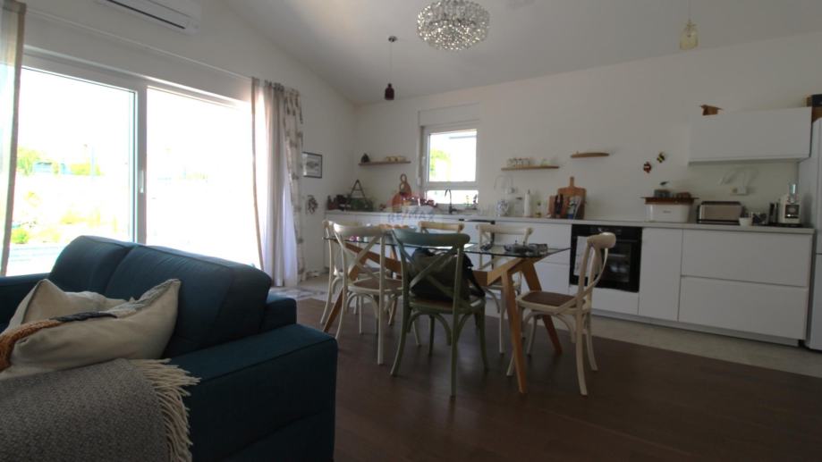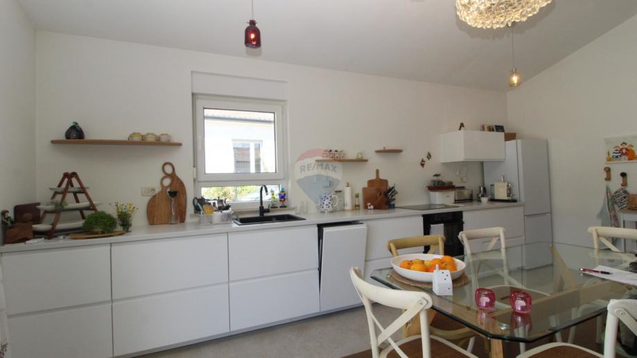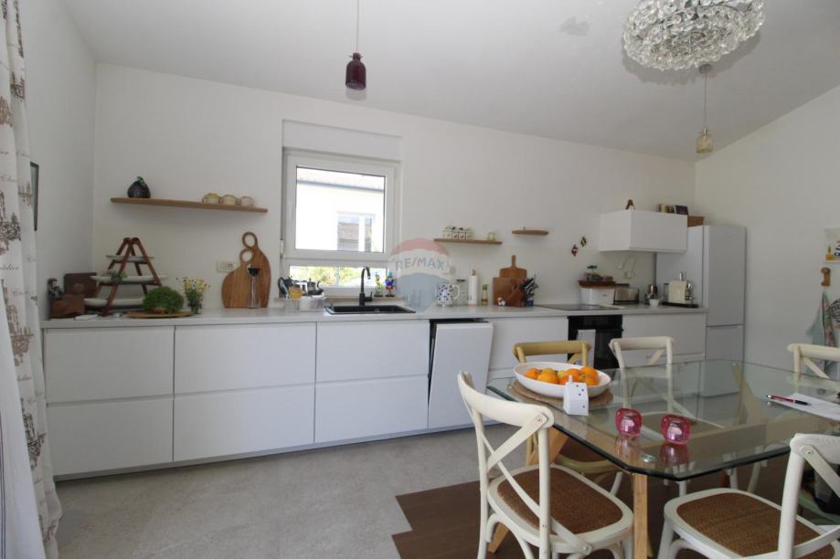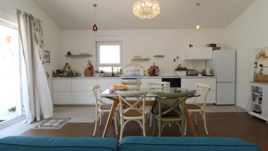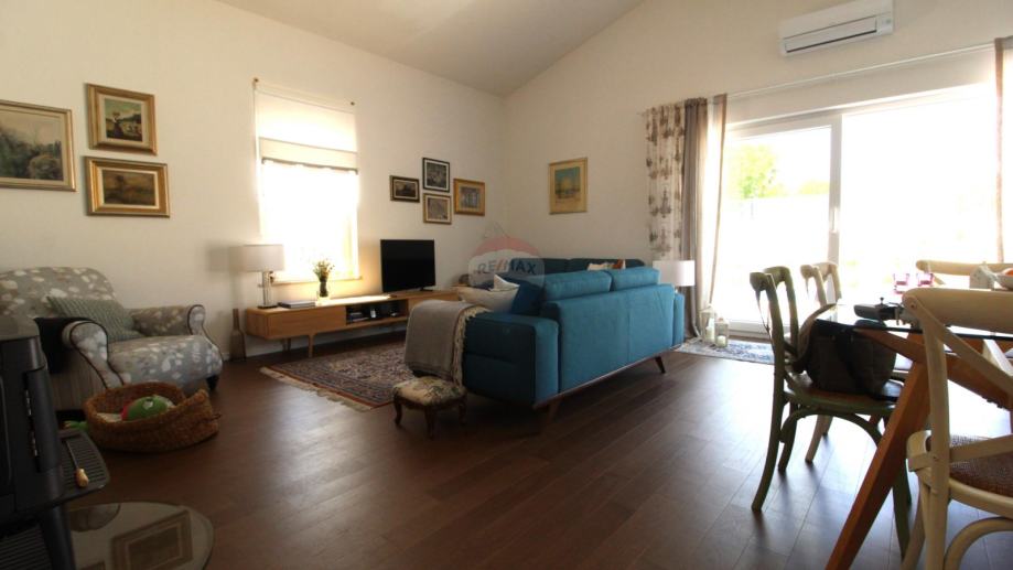 Sastoji se od prostranog dnevnog boravka s kuhinjom i blagavaonom , tri spavaće sobe te dvije kupaone.