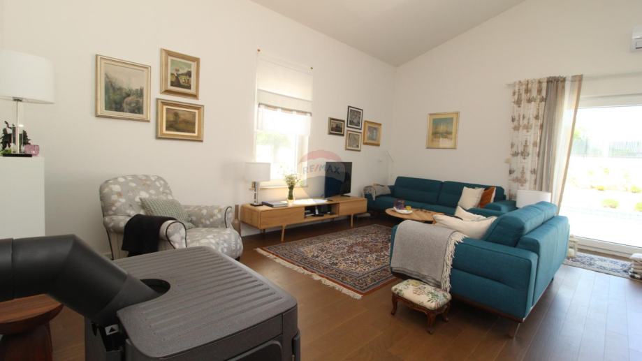 Grijanje je riješeno preko klima uređaja te modernom peći na drva. Kuća ima priključak za optički internet.