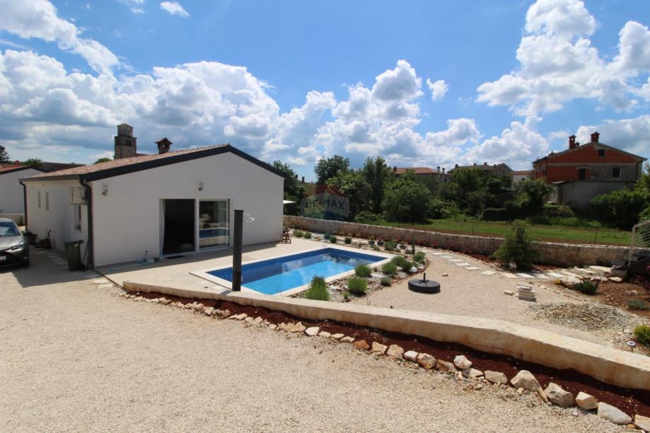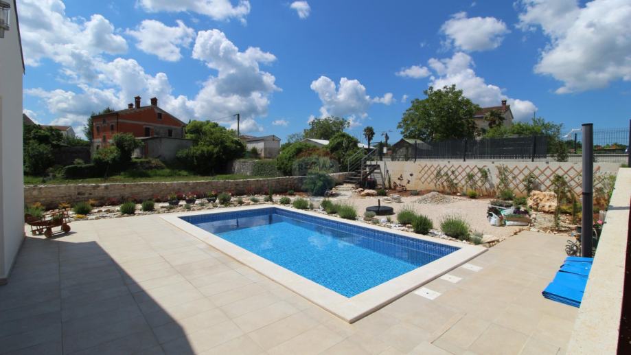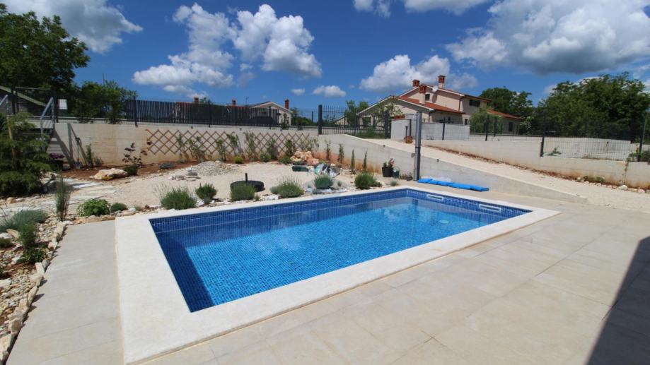Na okućnici je smješten bazen kvadrature 18 m2 te puno različitih mediteranskih bilja .