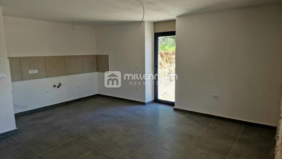 U prizemlju kuće nalaze se dnevni boravak i kuhinja iz koje se izlazi na terasu.