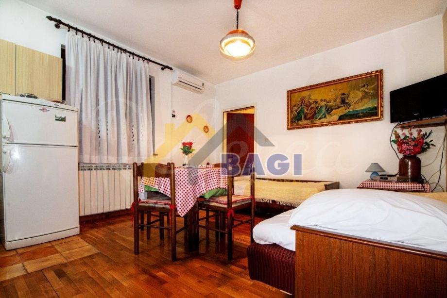 Sastoji se od: sobe,dnevnog boravka,kuhinje 14,35m²,kupaonice 1,70m²,nenatkrivene terase 26,66m², natkriveno parkirno mjesto 17,60m²
