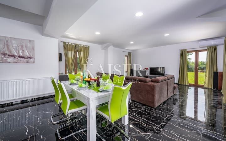 Nedaleko od kuće nalazi se ljetna kuhinja od 50 kvadratna metra i garaža od 40 kvadratnih metara koji bi se zbog odvojenosti od kuće moglo prenamijeniti u još jednu stambenu jedinicu.