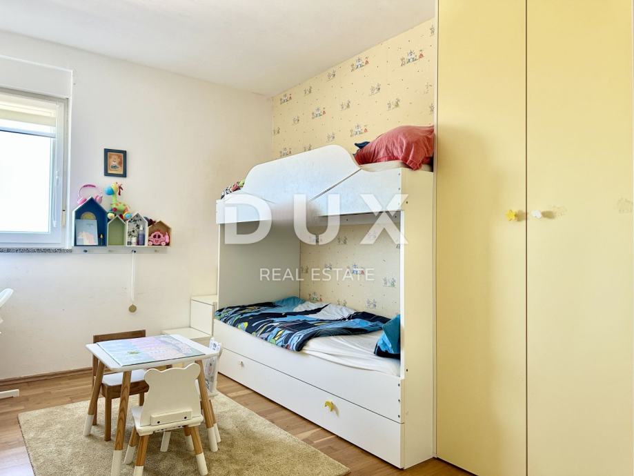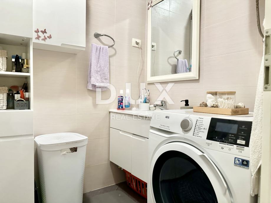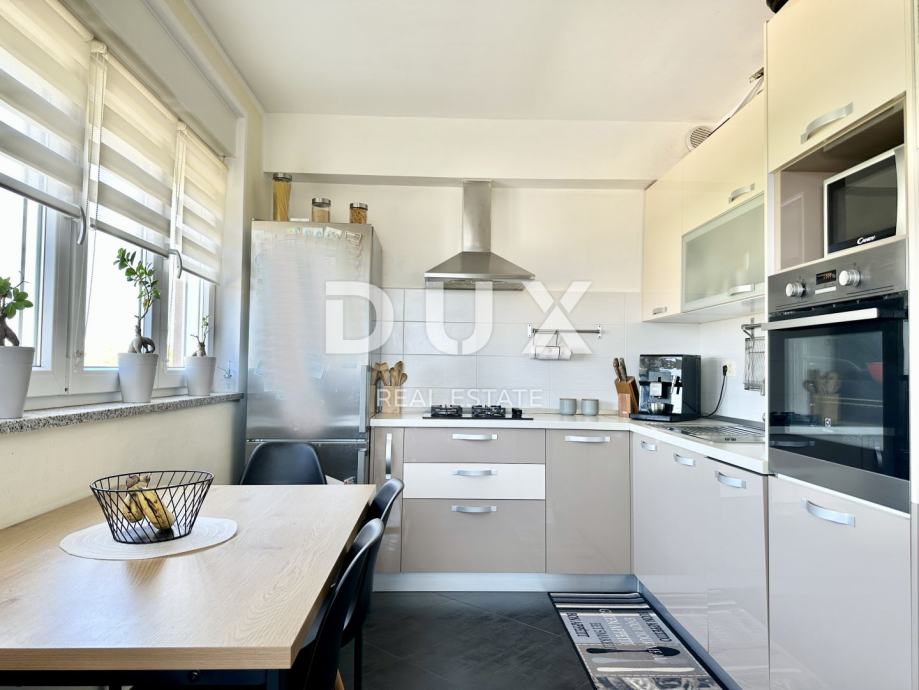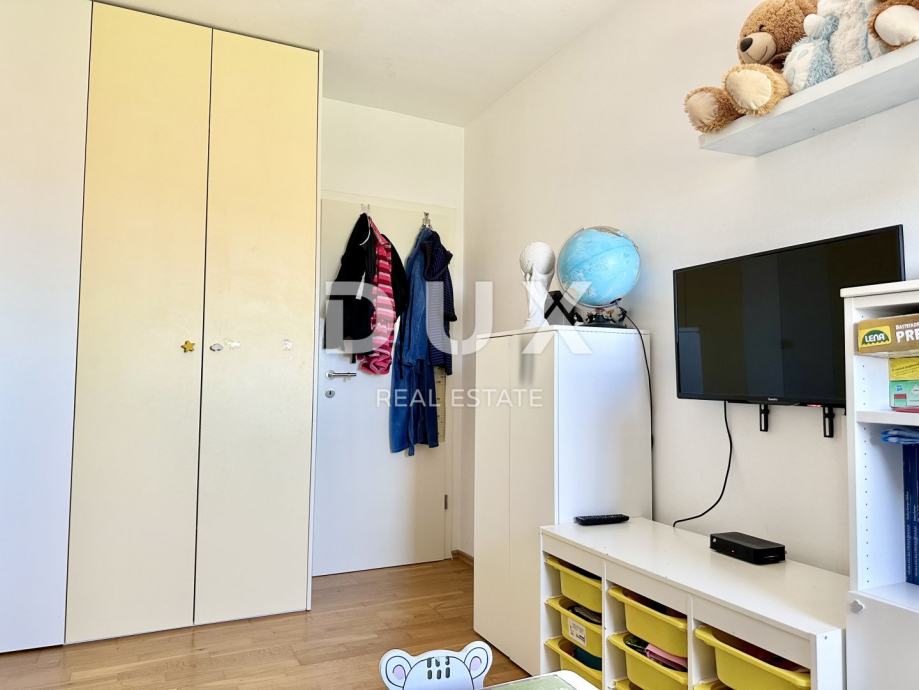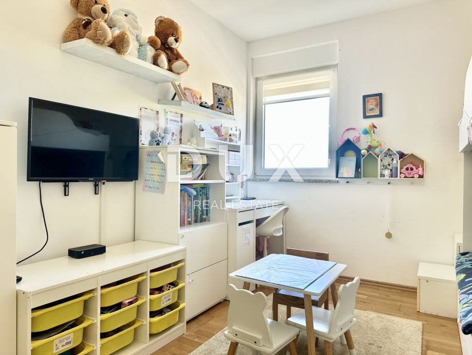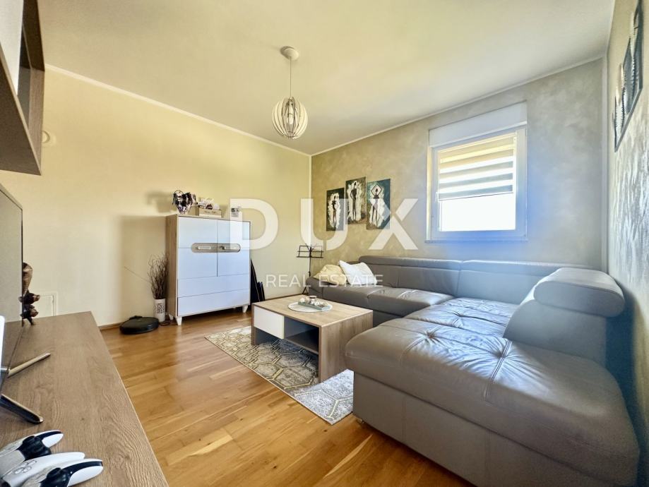 Stan se grije i hladi putem klima uređaja, a postoji i priključak za peć – iako zbog odlične izolacije i orijentacije nije potrebna. Kvalitetna PVC stolarija, keramičke pločice u kupaonici i kuhinji, dok su ostale prostorije obložene laminatom. Namještaj po mjeri ostaje u stanu, što omogućava brzo i bezbrižno useljenje.