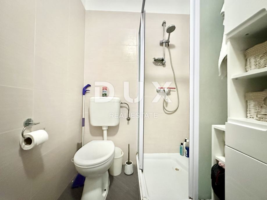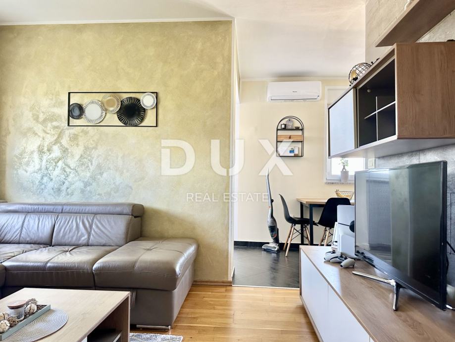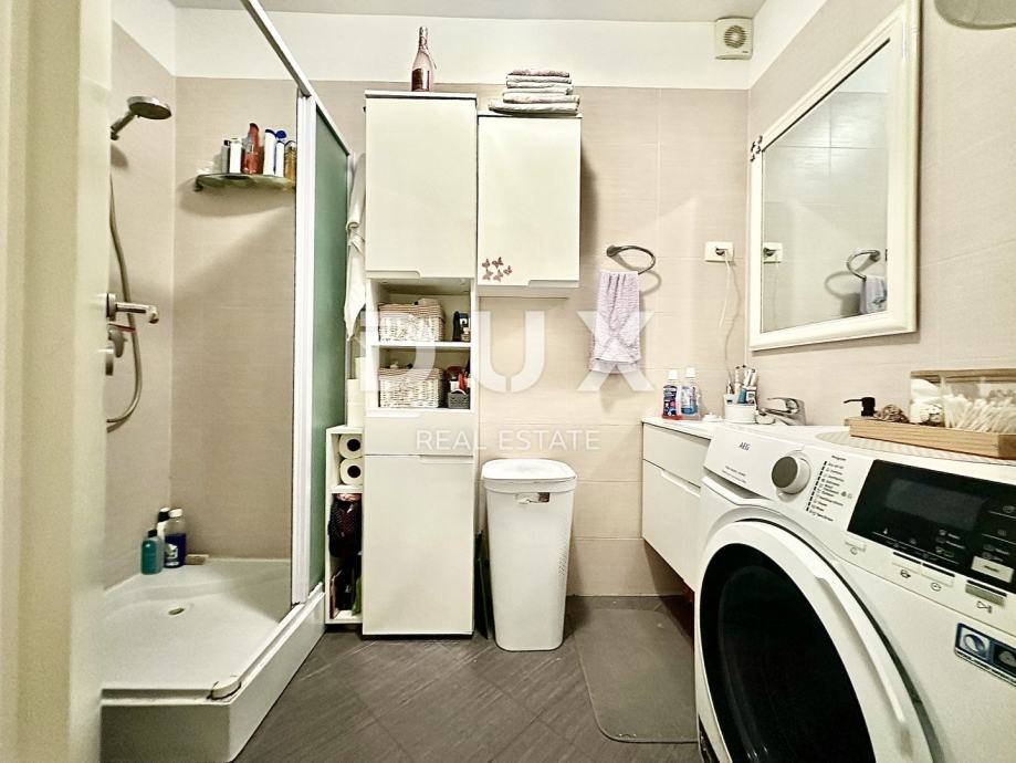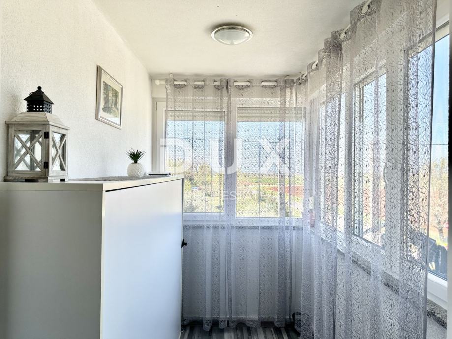 Sastoji se od jedne spavaće sobe, prostranog dnevnog boravaka s kuhinjom i blagovaonicom, kupaone, hodnika i zatvorene loggie koja je prenamijenjena u dodatnu spavaću sobu, s kvalitetnim zidnim krevetom izrađenim po mjeri. Stanu pripada i parkirno mjesto ispred zgradde od 14,28 m2.