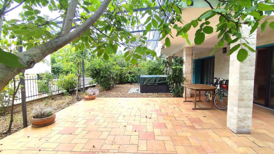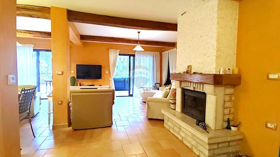 Dvorište je opremljeno vanjskim kaminom i jacuzziem, a vrt je ozelenjen s ugrađenim automatskim navodnjavanjem za travu i biljke.