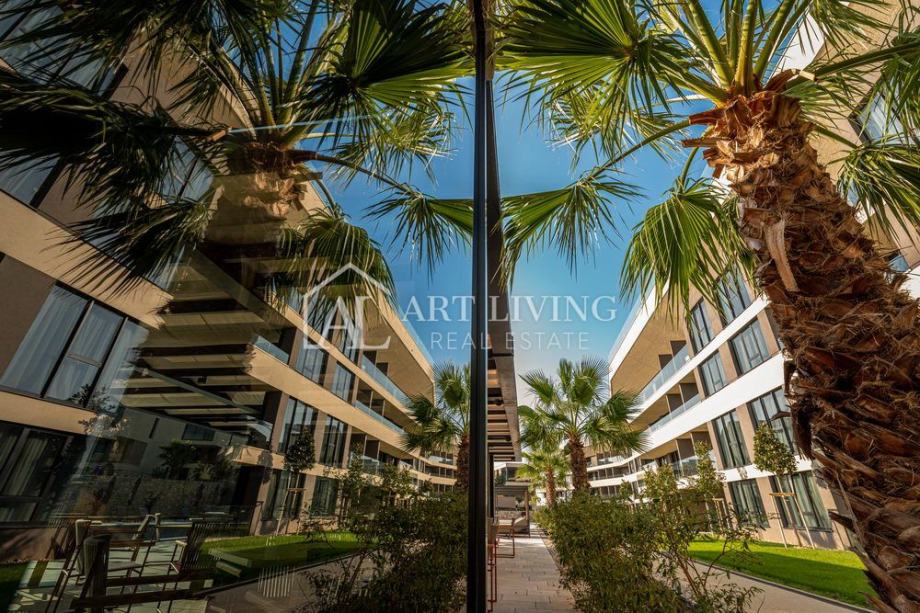 Apartmani se ističu izuzetnom arhitektonskom gradnjom i kvalitetom vrhunskih materijala, podizne staklene stjenke, dizalica topline, dizajnerska granitna velikoformatna keramika poznatih renomiranih brendova, visokokvalitetna sanitarna oprema, podna obloga višeslojnim hrastovim parketom.