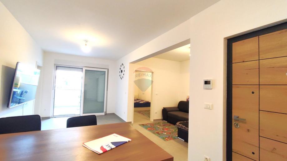 Sastoji se od dvije soavaće sobe,kuhinje i prostranog dnevnog boravka,terase i kupaonice.