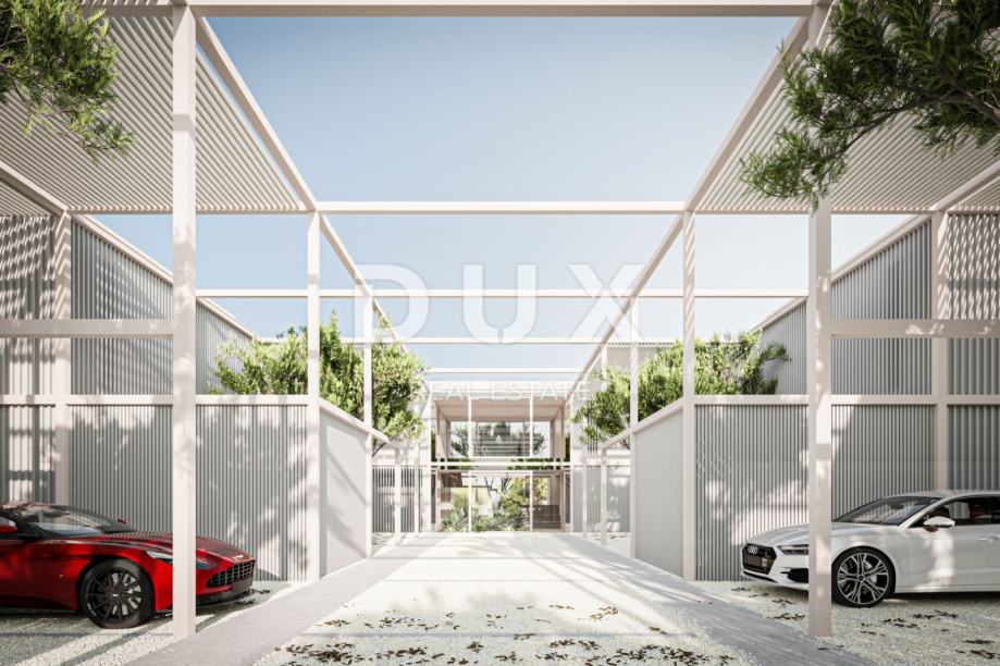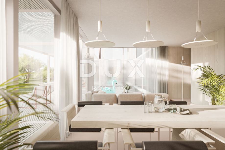 Prizemlje vile čini open-space dnevni boravak s velikim staklenim stijenama i izravnim izlazom na terasu, kuhinja povezana s blagovaonicom, garderoba i gostinjski toalet. Prostor je funkcionalno osmišljen, s odličnim prirodnim svjetlom i direktnom vezom s eksterijerom.