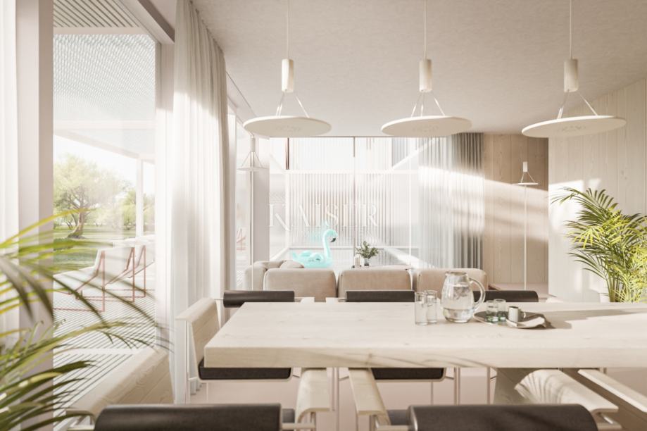 Interijer se prirodno nastavlja u vanjski dio, čineći prostor većim, fluidnim i izuzetno ugodnim za boravak.