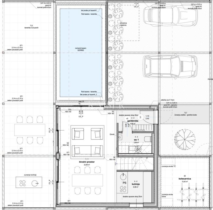 Privatni vrt 206 m² • Bazen 22 m² • 2 parkirna mjesta 26m2 • Ulazni vrt 16m2
