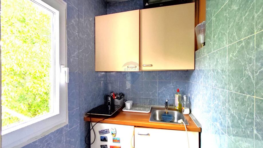 Stan se sastoji od sobe koja služi kao dnevni i spavaći prostor, kupaonice te zatvorene lođe prenamijenjene u kuhinjicu, što omogućuje bolju funkcionalnost prostora. Dodatna prednost je spremište u podrumu zgrade, idealno za pohranu sezonskih stvari, te osigurano parkirno mjesto ispred zgrade – rijetkost u centru.