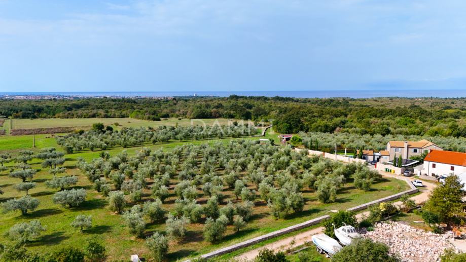 Na izrazito mirnoj lokaciji, okruženoj prekrasnom zelenilu prodajemo kompleks građevinsko-poljoprivrednog zemljišta 8060 m2. Zemljište je udaljeno samo 3 kilometra od mora, te 4 kilometra od centra Umaga. Unutar granica građevinskog područja nalazi se 2000 m2, dok je ostatak poljoprivredno zemljište s mogućnošću urbanizacije. Na zemljištu se trenutno nalazi prekrasan maslinik star 30 godina. Infrastruktura vode i struje nalazi se na samom zemljištu.
