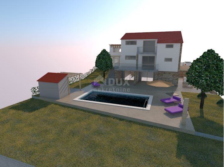 Na ukupnoj površini parcele od 655 kvadrata, trenutno se nalazi izgrađena kuća sa tri apartmana u dvije etaže, u prizemlju dva apartmana ukupne površine 100 kvadratnih metara i na katu jedan apartman površine 100 kvadrata. Uz kuću se nalazi garaža površine 60 kvadratnih metara, dovoljne za smještaj automobila . Sa terase gornjeg apartmana i ravnog krova garaže pruža se pogled na more. Oko kuće je dovoljno prostrana okućnica u kojoj je moguće izgraditi bazen. Kuća je spojena na ukupnu komunalnu infrastrukturu – struja, vodovod i kanalizacija.