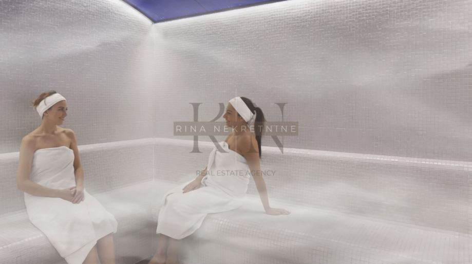 Luxuzno zatvoreno naselje bogato sadržajima poput: recepcije, restorana, wine bara, zajedničkog bazena, relax i spa zone te teretane. Na svega par koraka od prekrasne plaže.
