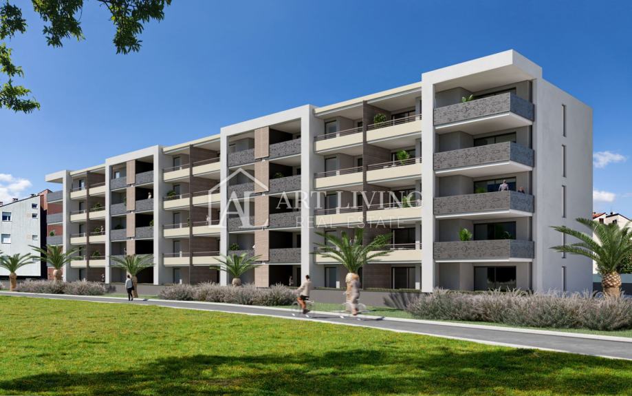Stan je smješten na četvrtom katu moderne novogradnje sa liftom. Ukupna površina stana iznosi 63.60 m2. Sastoji se od dnevnog boravka sa kuhinjom i blagovaonom po open space konceptu, spavaće sobe i kupaonice. Iz dnevnog boravka izlazi se na prostranu natkrivenu terasu površine 14,80 m2 sa pripremljenim instalacijama za ljetnu kuhinju, sa koje se pruža prelijep panoramski pogled na more