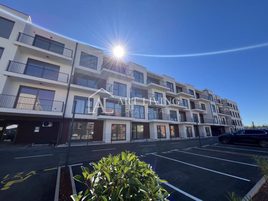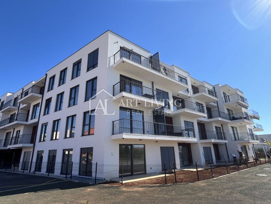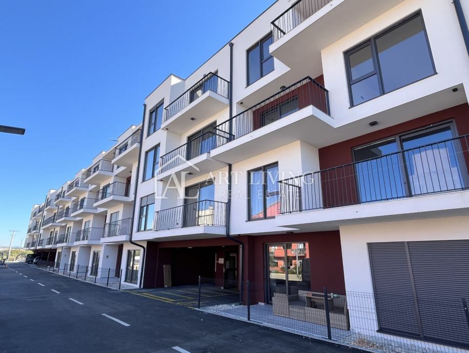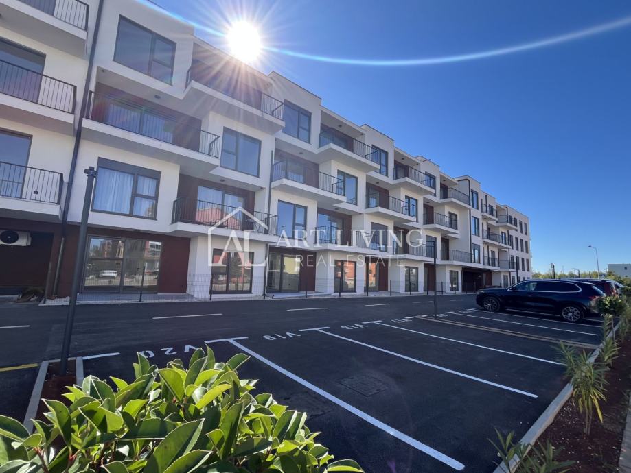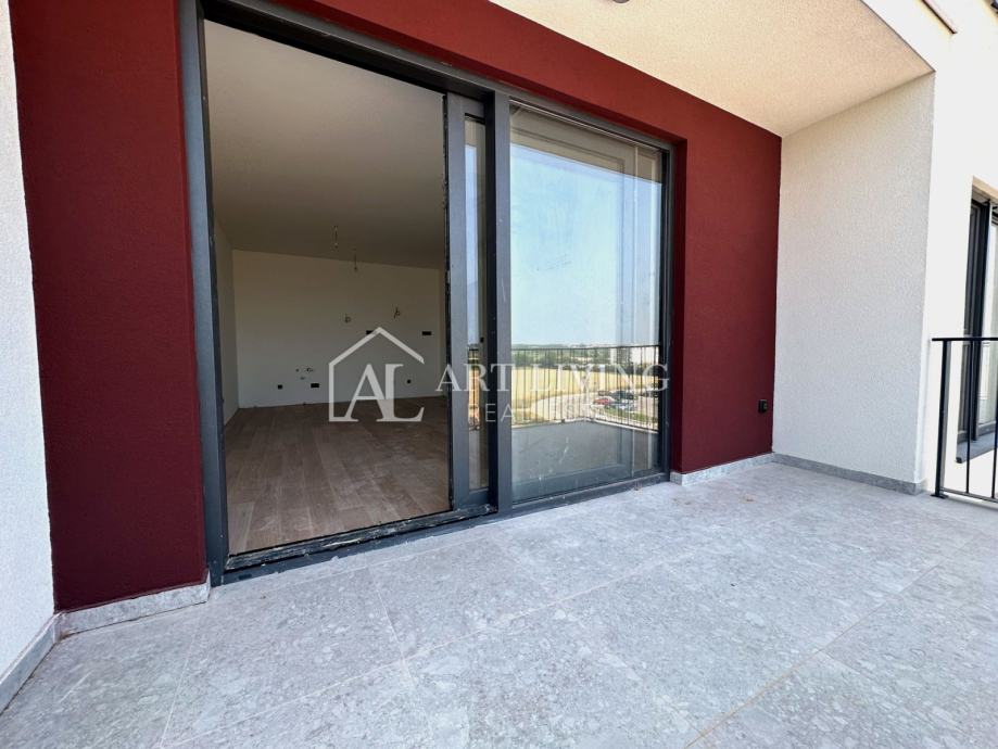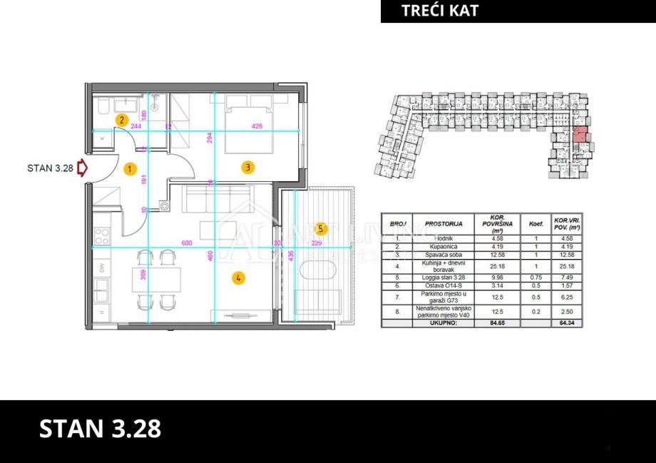 Stan je smješten na 3. katu nove moderne zgrade sa liftom. Neto površina stana iznosi 64,34 m2. Sastoji se od dnevnog boravka sa kuhinjom i blagovaonicom, kupaonice i spavaće sobe. Iz dnevnog boravka se izlazi na balkon površine 10,00 m2. Stanu pripada spremište, jedno garažno i vanjsko nenatkriveno parkirno mjesto.