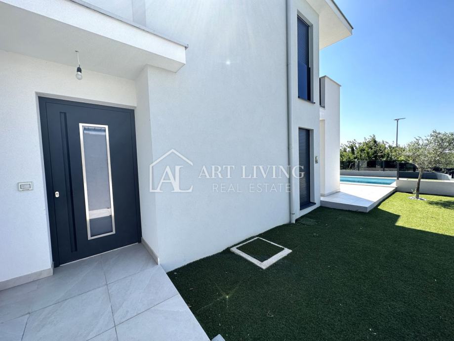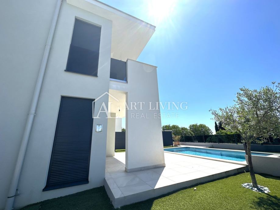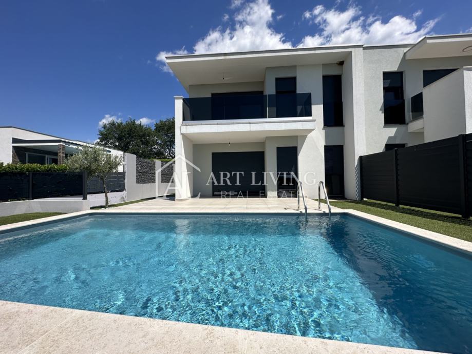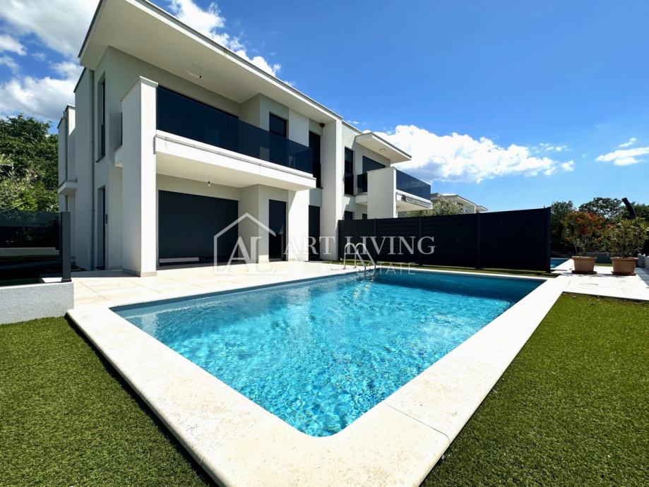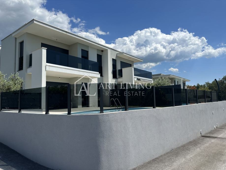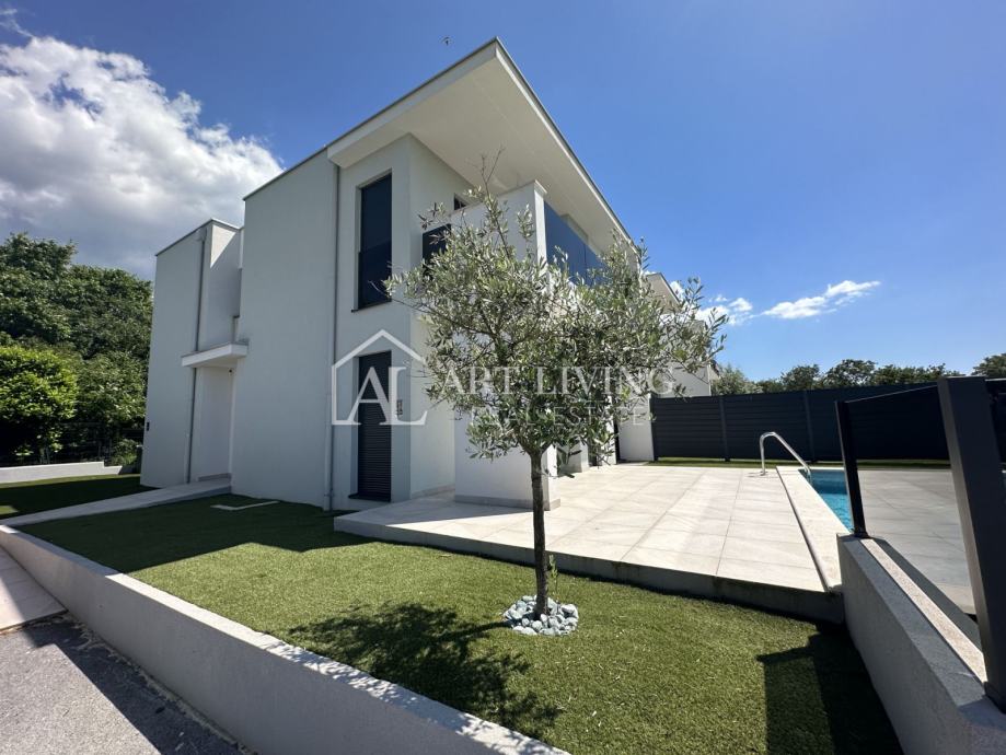 Prodaje se dvojna vila s bazenom u novogradnji moderne arhitekture, na mirnoj i lijepoj lokaciji samo nekoliko minuta vožnje do obližnje Lovrečice i 1,3 km, udaljenosti od mora.