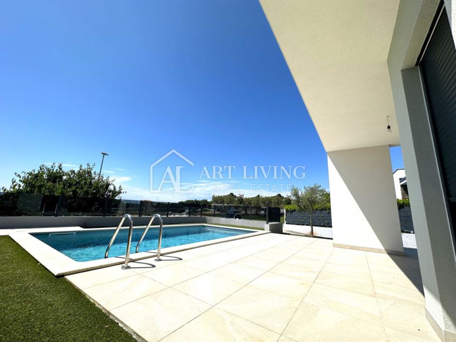 Vila je građena od visokokvalitetnih građevinskih materijala. U prizemlju, na prvom katu, terasi i balkonima su keramičke pločice imitacija drveta. Prozori su PVC troslojni boje antracit - siva. Bijela fasada kombinirana je se s prirodnim kamenom. Hlađenje/grijanje na klima uređaju i norveškim IR panelima.