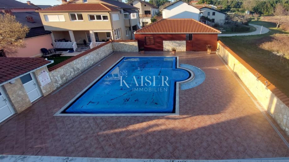Kaiser Immobilien nudi na prodaju kuću sa sedam apartmana i bazenom, dodatnim odvojenim objektom uz kuću za smještaj radnika, sve na atraktivnoj lokaciji udaljenoj 300m od mora, 2km od ATP stadiona Stella Maris i 4km od grada Umaga. Idealna lokacija za poduzetnike koji žele nekretninu za turističku djelatnost.