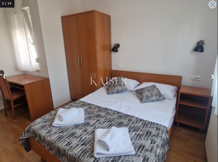 Iskoristite ovu jedinstvenu priliku za kupnju nekretnine koja svojom veličinom i brojem smještajnih jedinica (7 apartmana), te pratećim sadržajima u funkciji poslovanja (bazen, praonica, spremišta, recepcija, smještaj za radnike…) pruža jedinstvenu priliku za investitore u turističku djelatnost bez ili uz minimalna dodatna ulaganja.