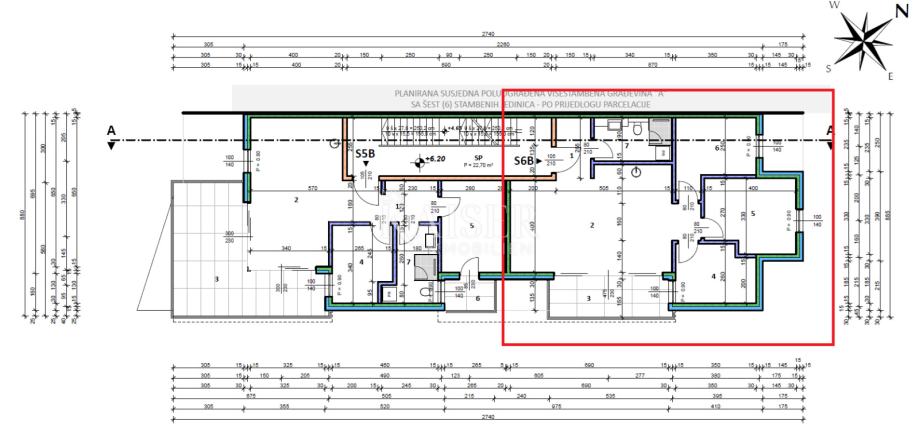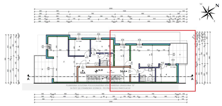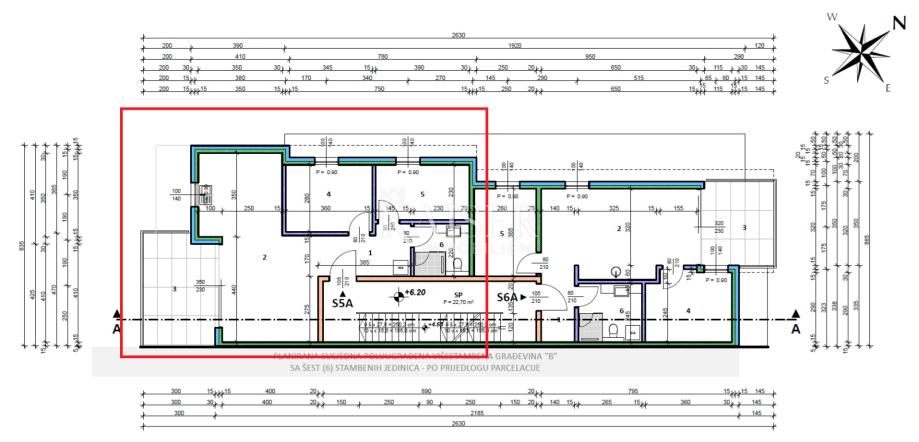 Stan S5A je smješten na drugom katu moderne novogradnje sa 12 stanova. Ukupan neto korisna površina stana iznosi 68 m2. Sastoji se od dnevnog boravka sa kuhinjom i blagovaonicom otvorenog tipa, 2 spavaće sobe, kupaonice i hodnika. Iz dnevnog boravka se izlazi na natkrivenu terasu veličine 14m2 sa koje puca prekrasan pogled na more. Stanu pripada ostava i jedno parkirno mjesto u garaži.
