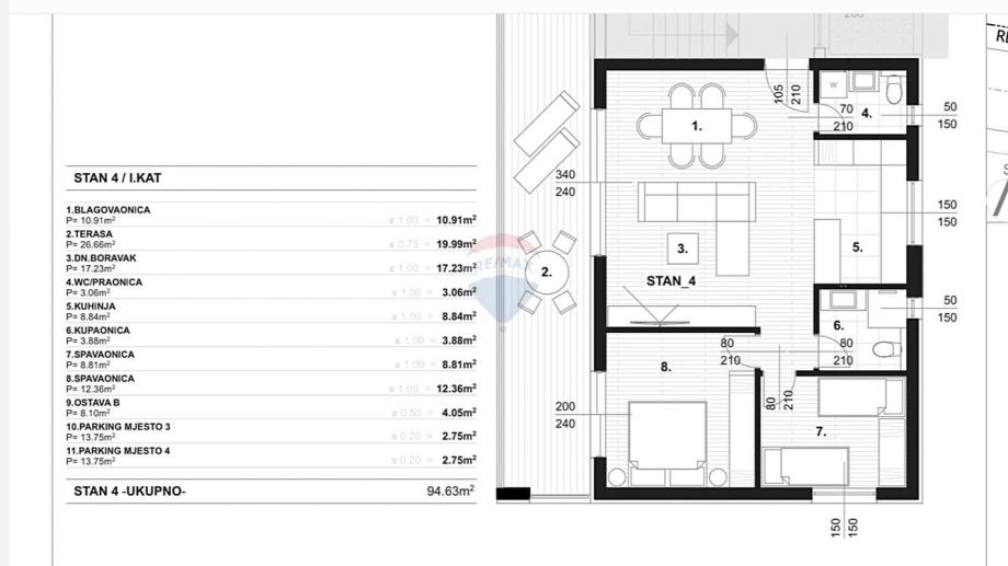Stanu pripada i spremište u podrumu zgrade te dva parkirna mjesta u vlasništvu.