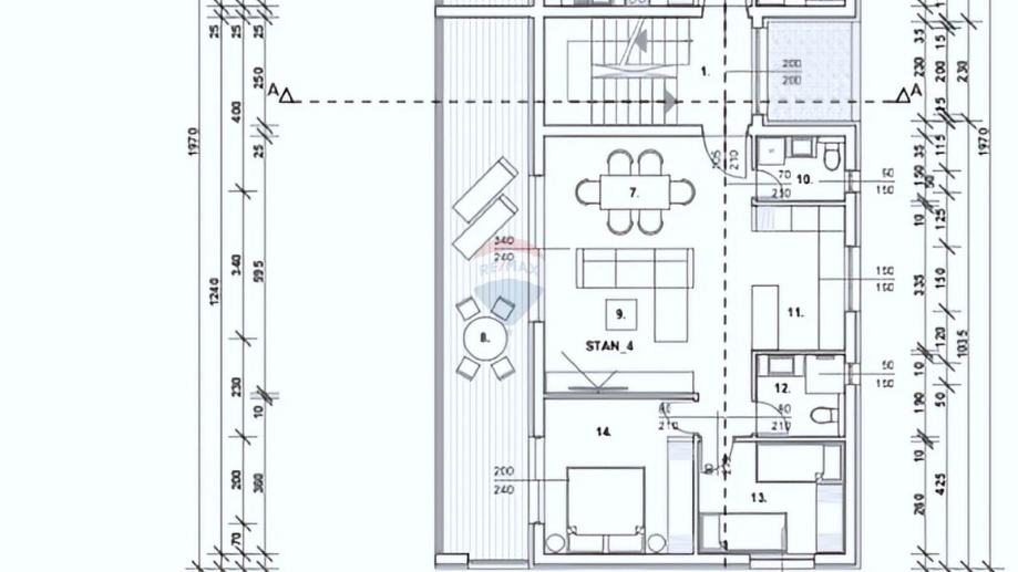 Tlocrtno je vrlo funkcionalno organiziran te obuhvaća prostrani dnevni boravak s blagovaonicom i kuhinjom, dvije spavaće sobe, modernu kupaonicu, zasebni toalet te terasu koja nudi prostor za opuštanje i uživanje u pogledu na more.