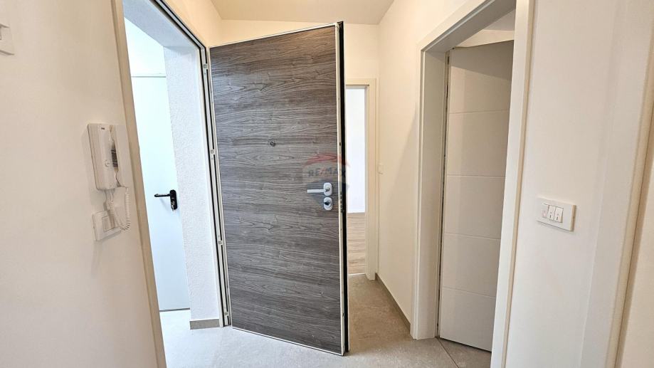 Stan se nalazi na drugom katu i prostire se na površini od 66,84 m². Raspored prostora osmišljen je funkcionalno i udobno te uključuje hodnik, prostrani dnevni boravak povezan s kuhinjom i blagovaonicom, dvije spavaće sobe, kupaonicu te terasu idealnu za uživanje na otvorenom.