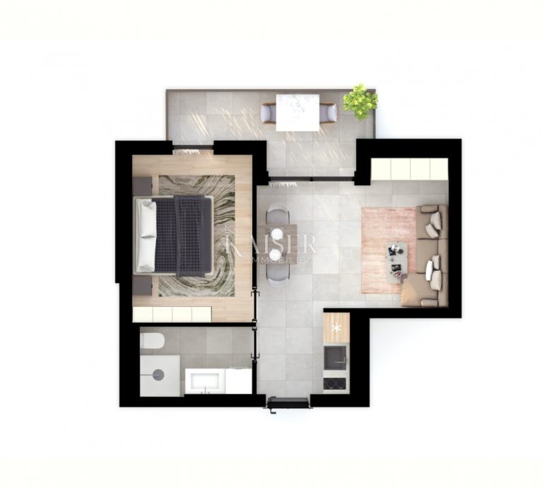 Kaiser Immobilen nudi moderan i funkcionalan stan u novogradnji. Stan je smješten u Umagu, u neposrednoj blizini svih važnijih sadržaja; dućani, vrtić, škola, dom zdravlja, sportski tereni, kafići i restorani. Ujedno se nalazi udaljenosti od samo 200m od prvih gradskih plaža, te centra grada i šetnica, što ga čini idealnim izborom za življenje kako za mlade zaposlene obitelji, tako i za one željne odmora i mira.