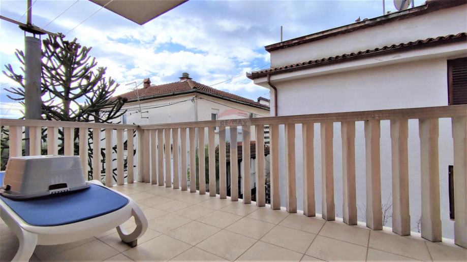 Iz stana na prvom katu je stepenište do potkrovlja koji ima iskoristive površine 38m2 sa dvije terase,sa koje se pruža lijepi pogled na marinu i more.