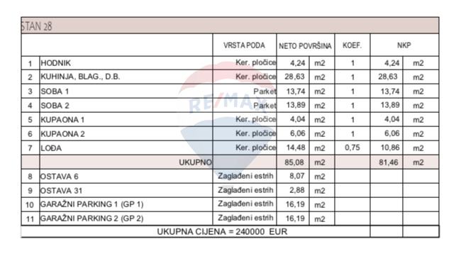 Stanu pripadaju mu 2 ostave i 2 garažna parkinga.