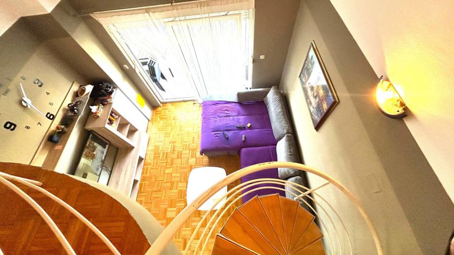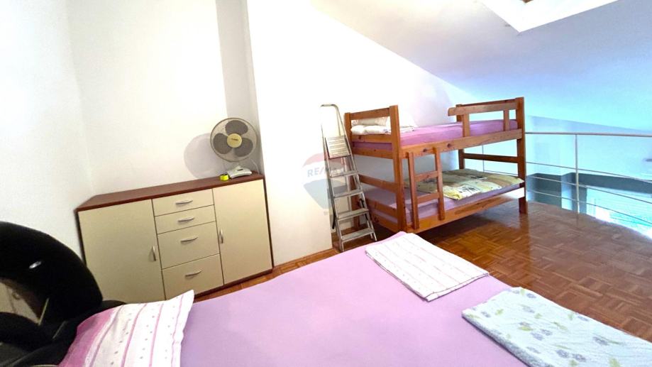 Galerije koja trenutačno služi kao veća spavaća soba, a nudi dodatnu svjetlost kroz krovni prozor