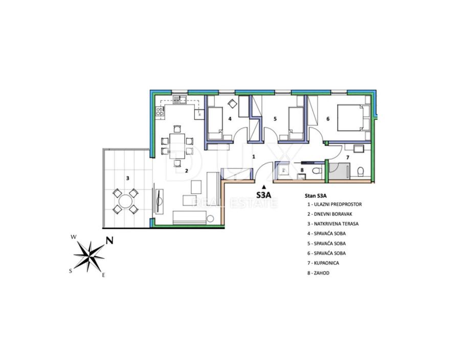 Na izuzetnoj lokaciji u neposrednoj blizini mora, svega 400 metara od obale, smjestio se stan S3A – savršen spoj suvremenog dizajna, funkcionalnog rasporeda i dodatnih sadržaja koji podižu kvalitetu svakodnevnog života.