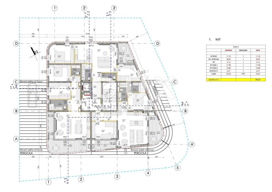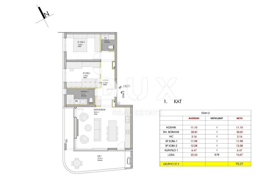 Predmet prodaje je stan površine 92,27 m² koji se nalazi na prvom katu zgrade.