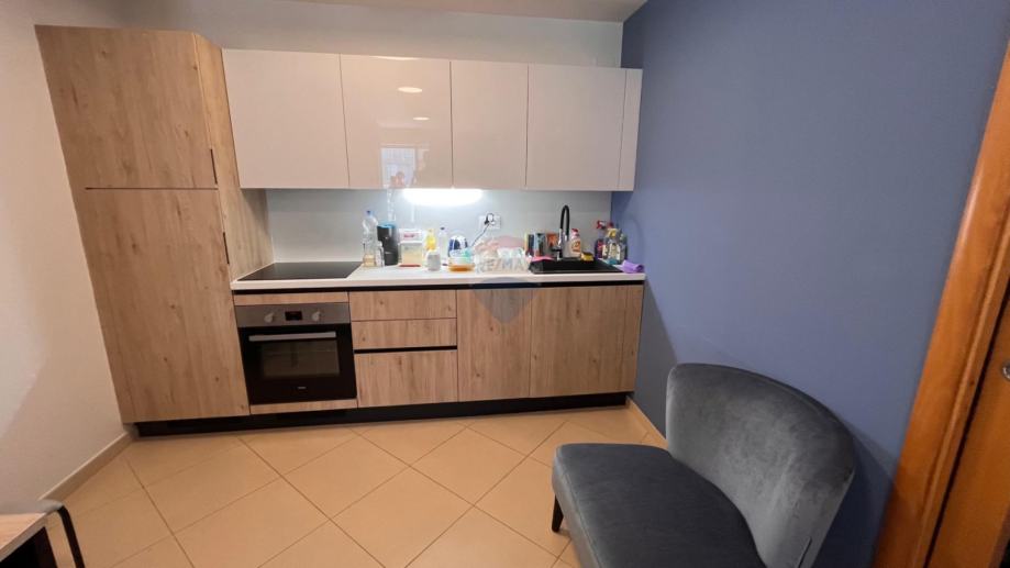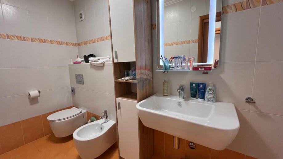 Stan ima prostranu kupaonicu s pretprostorom za perilicu rublja. Ukupna površina stana je 32 m², uz garažno mjesto od 17,38 m² u podzemnoj garaži.