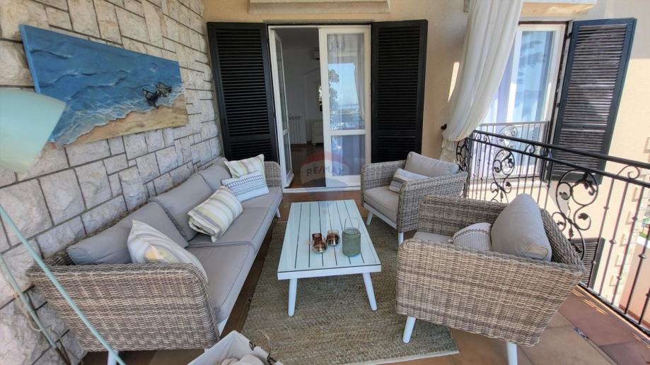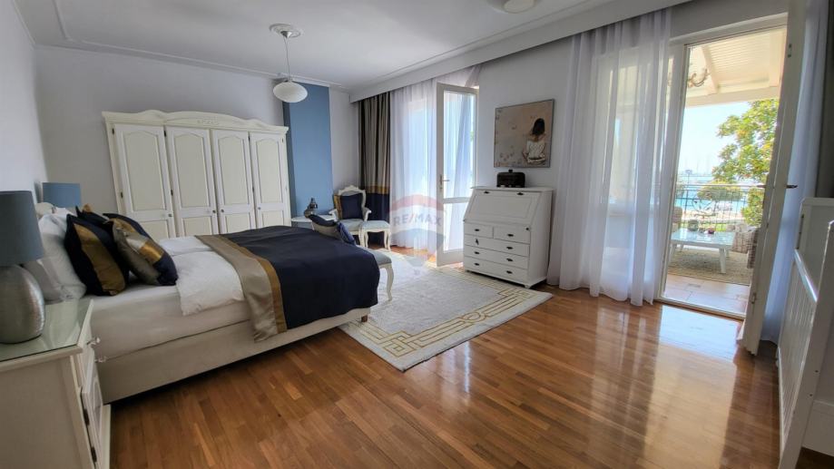 Glavni dio kuće je koncipiran od prizemlja gdje je smješten dnevni dio, odnosno veliki dnevni boravak s blagovaonicom i kuhinjom s izlazom na terasu, spavaća soba i kupaonica. Na katu kuće uz prostor za odmor, nalaze se još 4 spavaće sobe i 2 kupaonice. S velike terase pruža se predivan panoramski pogled na more. Svaki kutak kuće je besprijekorno uređen i odiše luksuzom.