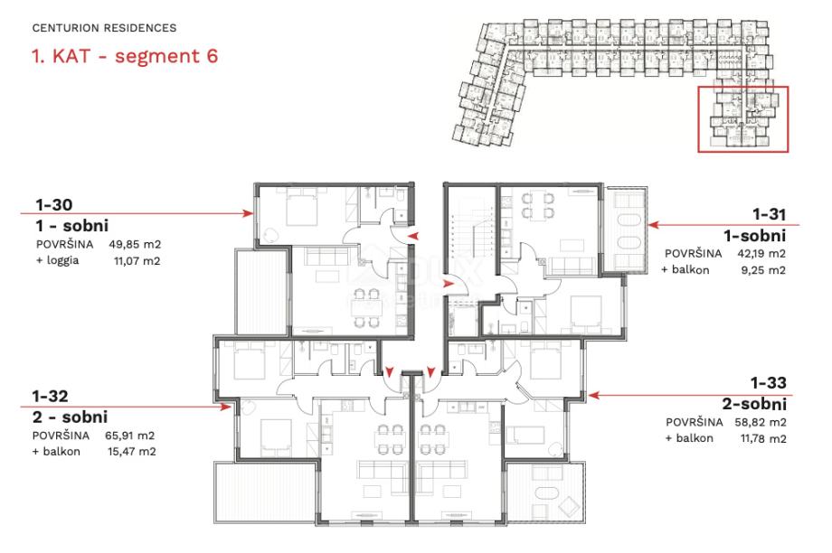 - 24x stanovi s jednom spavaćom sobom, dnevnim boravkom i balkonom
