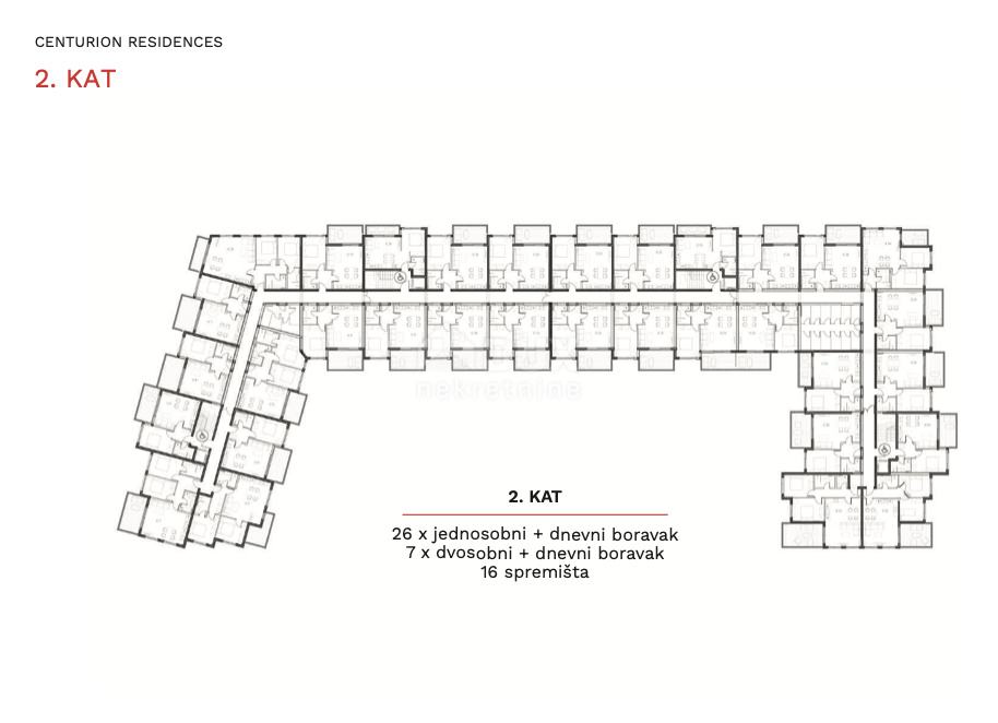 - 24x stanovi s jednom spavaćom sobom, dnevnim boravkom i balkonom