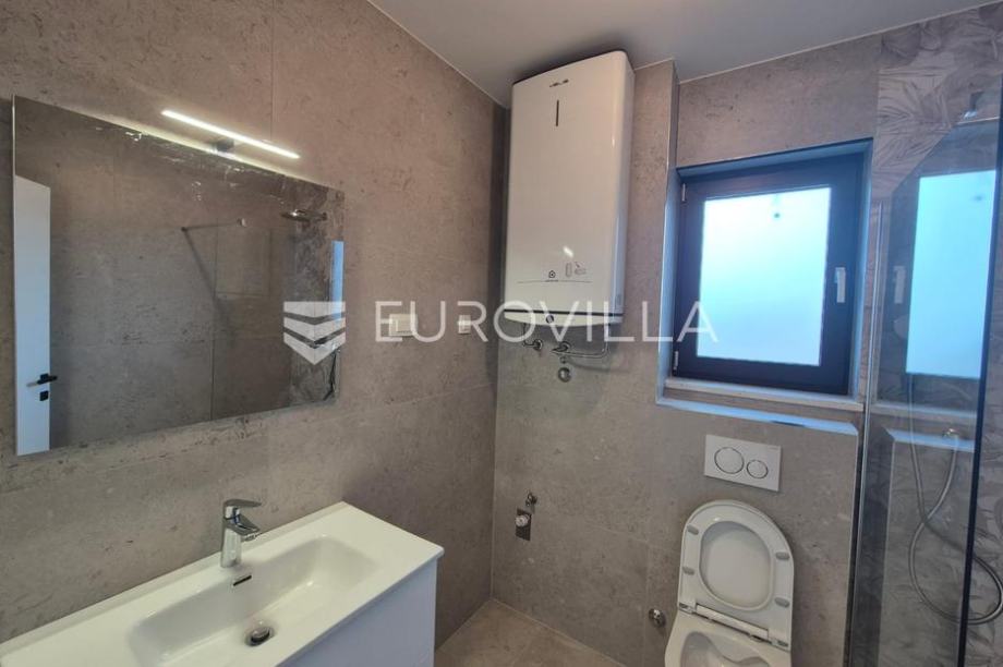 Iznajmljuje se prostran dvosoban stan sa 200m2 okućnice. Novi stambeni kompleks moderne arhitekture i visoke kvalitete u Vabrigi, samo 10 minuta hoda do najbliže plaže. Stan se nalazi u prizemlju zgrade i sastoji se od hodnika, otvorenog koncepta dnevnog boravka, blagovaonice i kuhinje, jedne...