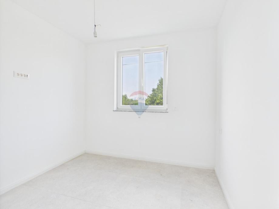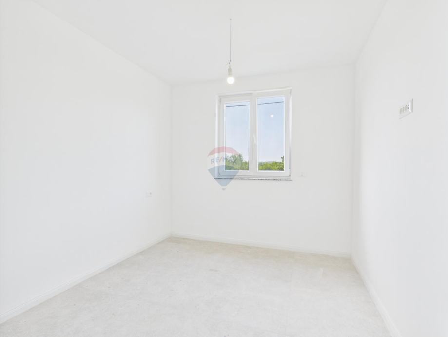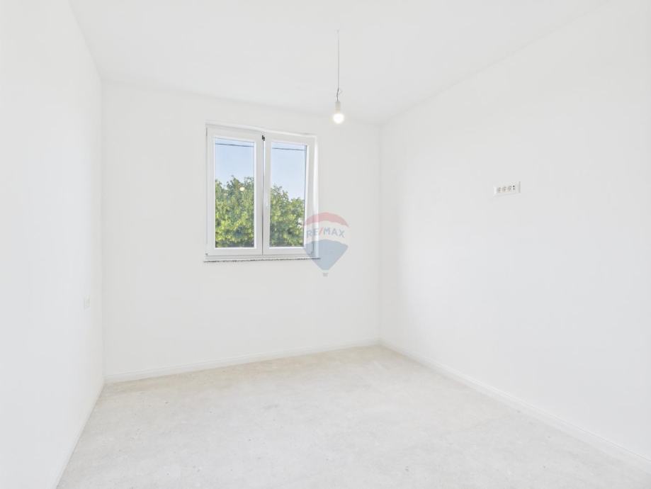 Stan se sastoji od hodnika, dnevnog boravka s kuhinjom i blagovaonom, 2 spavaće sobe, 1 kupaonice, natkrivene terase, te dva parkirna mjesta ispred zgrade.