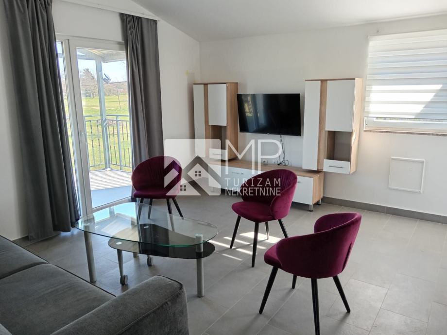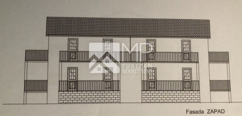Stanovi u prizemlju ( 2 ) i na katu ( 2 ) su jednaki, sastoje se od DB + kuhinje, dvije spavaće sobe, kupaonice i terase, cca 75 m2 – cijena 2600€/m2.