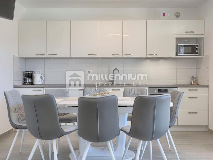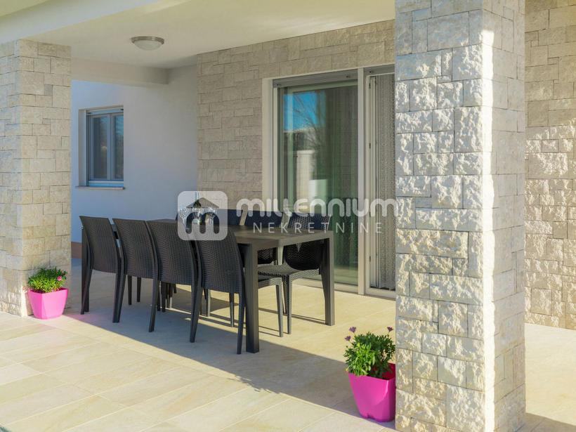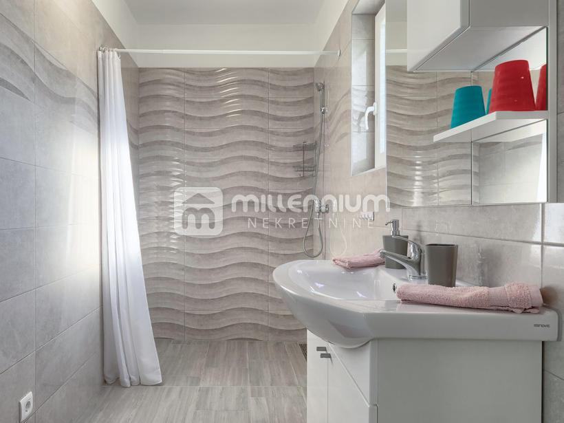 Kuća je koncipirana kao dvoetažni stambeni prostor, moderno je uređena te se prodaje kompletno namještena i opremljena.