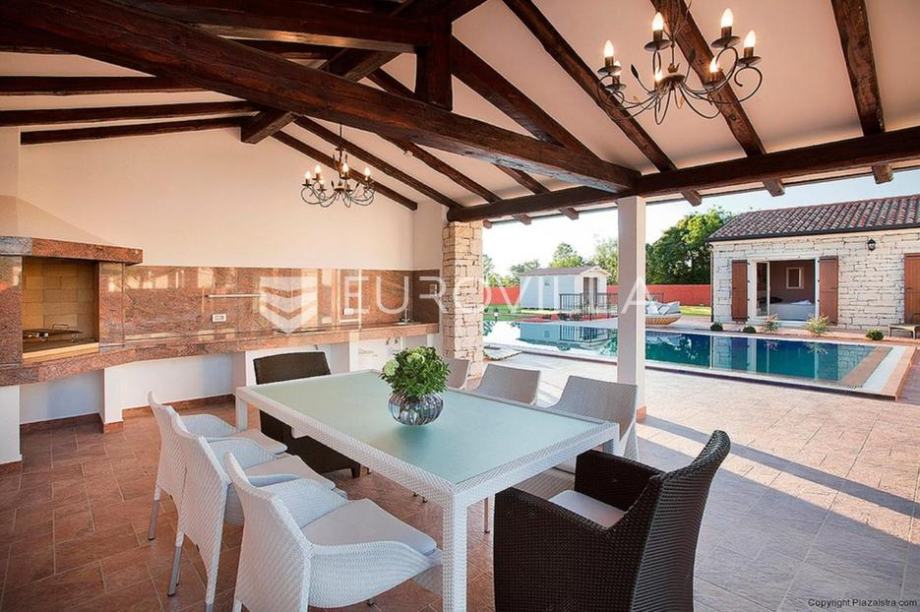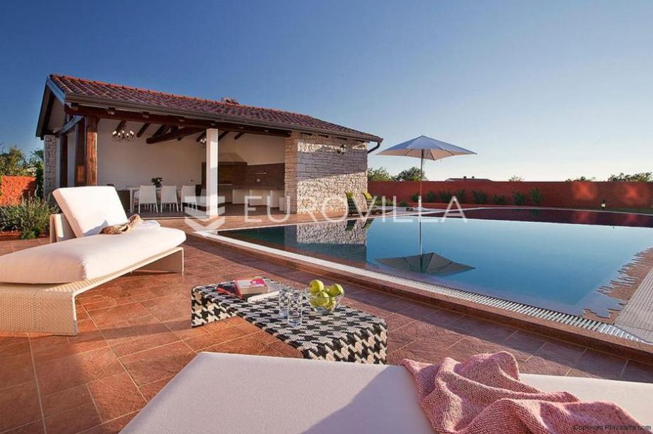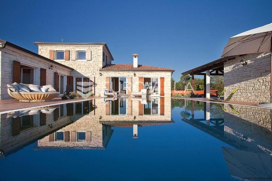 Istria, Čabrunići, Svetvinčenat - luxury villa with swimming pool on a 1700 m² plotOn a fenced plot of 1700 m² there is a modernly decorated holiday home with an A++ energy certificate. The house has 3 bedrooms, 4 bathrooms, a fully equipped kitchen, dining room, living room with fireplace,...