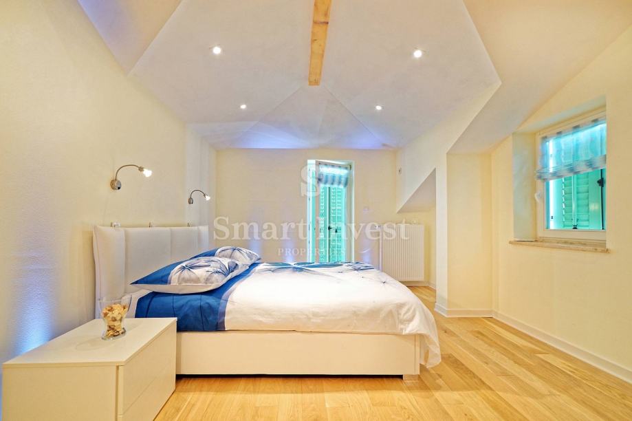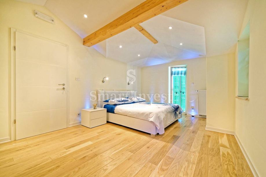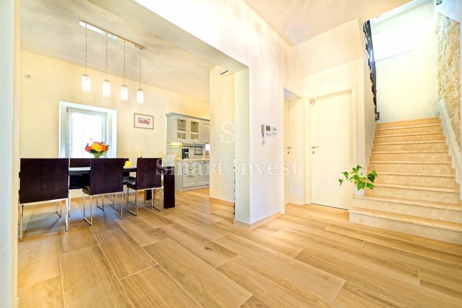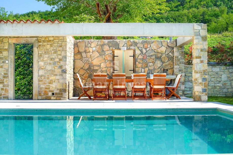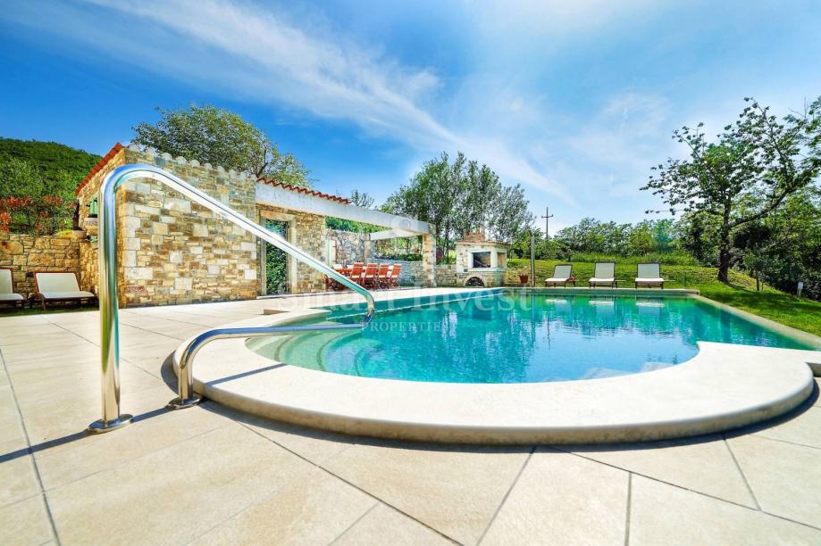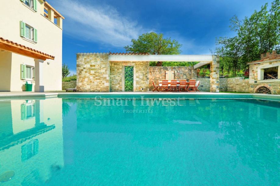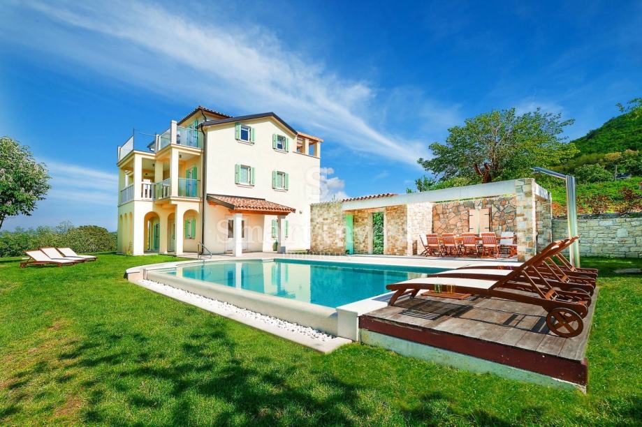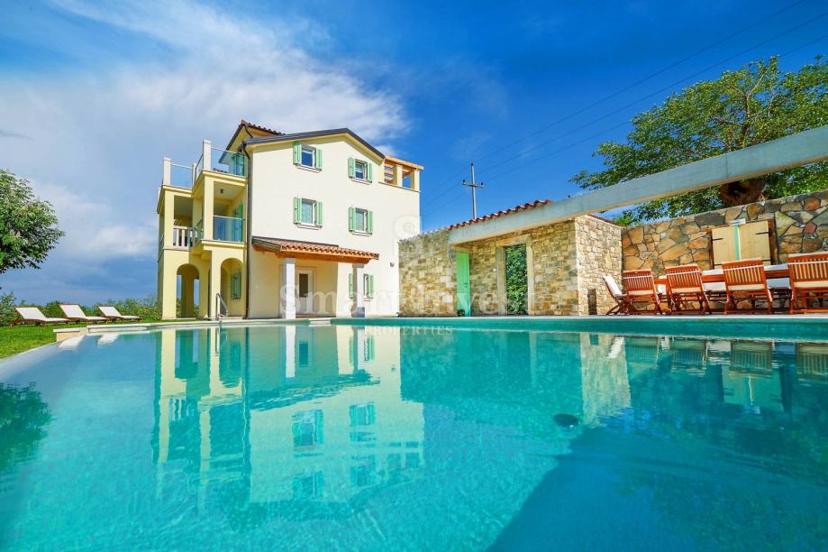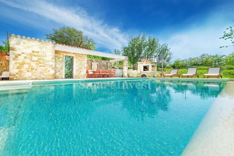 Ova luksuzno opremljena vila s grijanim bazenom, saunom i jakuzzi, nalazi se na rijetkoj i u današnjim danima vrlo traženoj lokaciji, na potpunoj osami, bez susjeda, s predivnim panoramskim pogledom na brežuljke, vinograde i romantičan Motovun. Sa svih strana je okružena negrađevinskim zemljištem te kao stvorena za ljubitelje mira, netaknute prirode i potpune privatnosti.