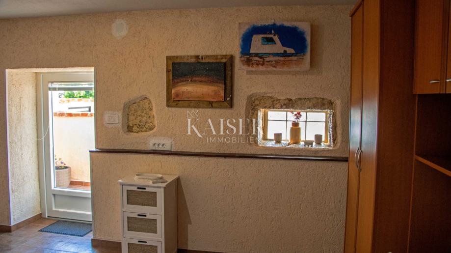 Druga kuća sastoji se od dva apartmana te dodatnog prostora s mogućnošću proširenja. U prizemlju se nalazi potpuno funkcionalan apartman od 32 m² koji je već uhodan u turističkom najmu. Na katu je još jedan apartman površine približno 40 m² koji je potrebno dovršiti iznutra, čime budući vlasnik ima priliku urediti ga prema vlastitim željama. U prizemlju se također nalazi dodatnih 17 m² prostora koji se može pripojiti postojećem apartmanu i tako značajno povećati njegovu kvadraturu i vrijednost.