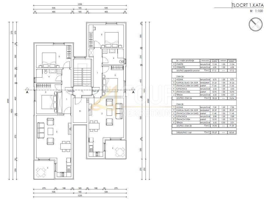 - 4 natkrivena parkirna mjesta + 4 nenatkrivena parkirna mjesta (svaki stan 2 parkirna mjesta)