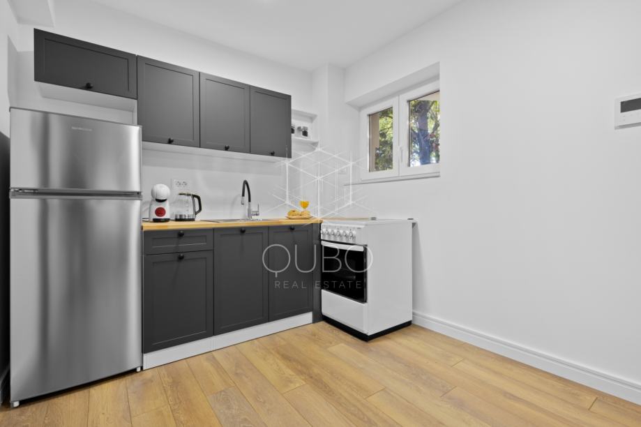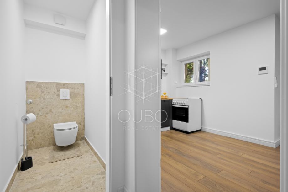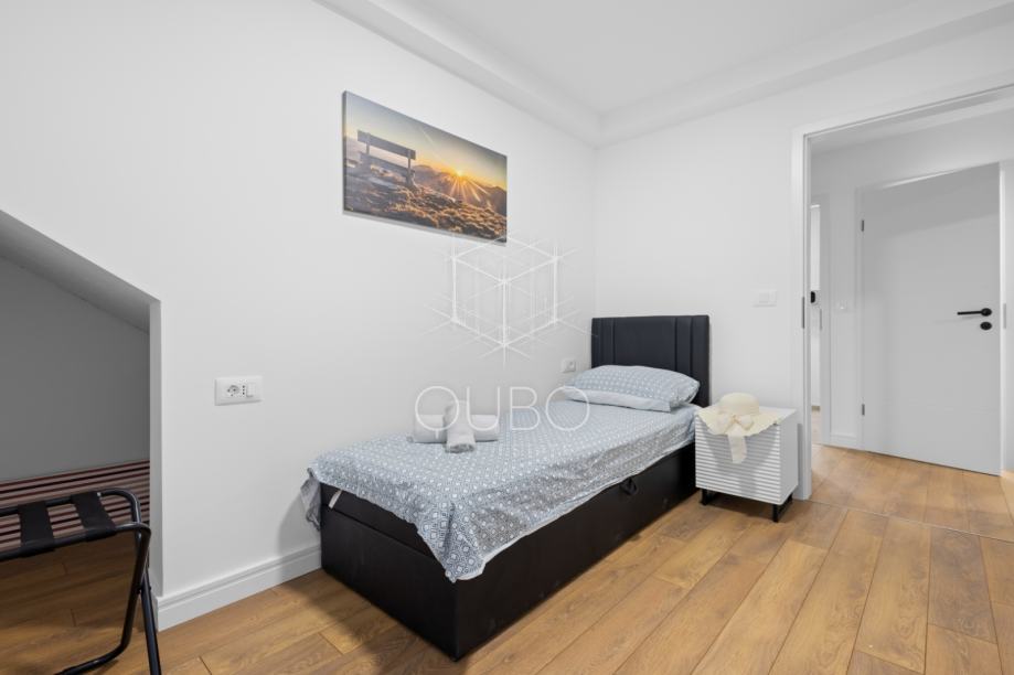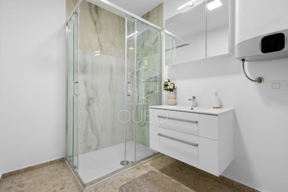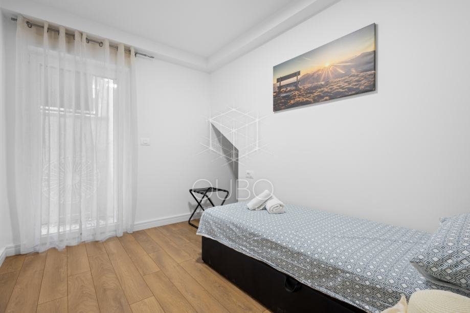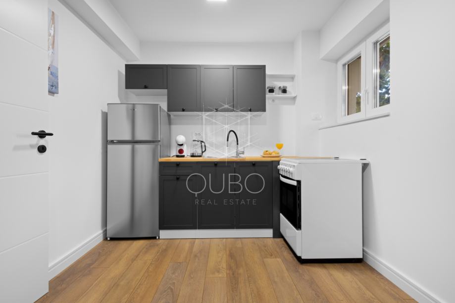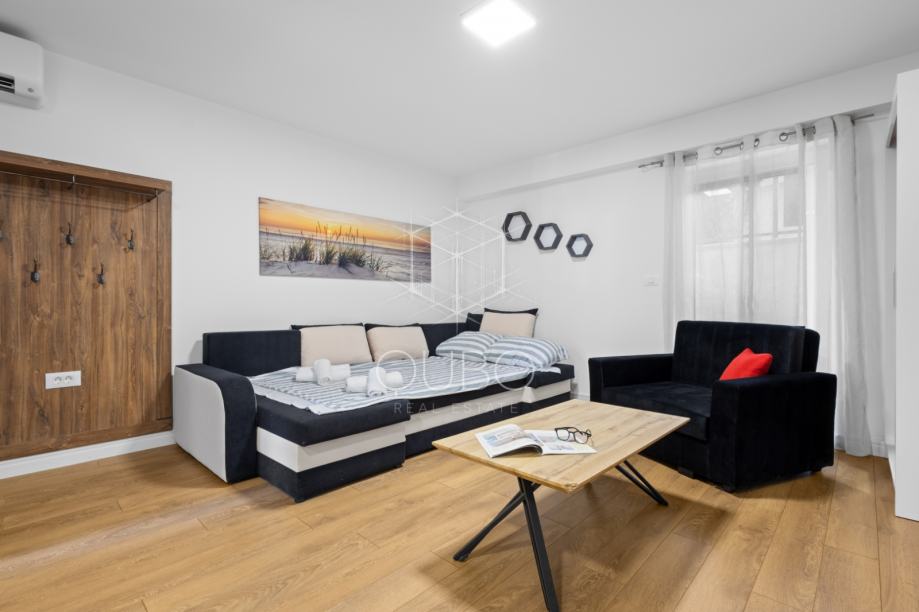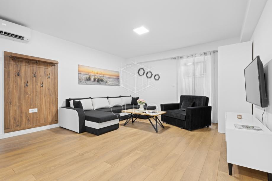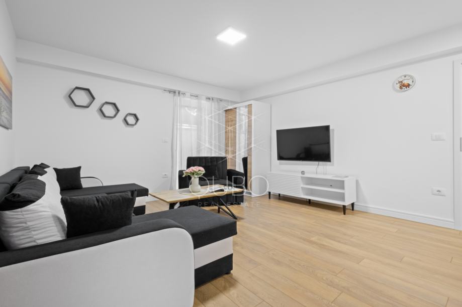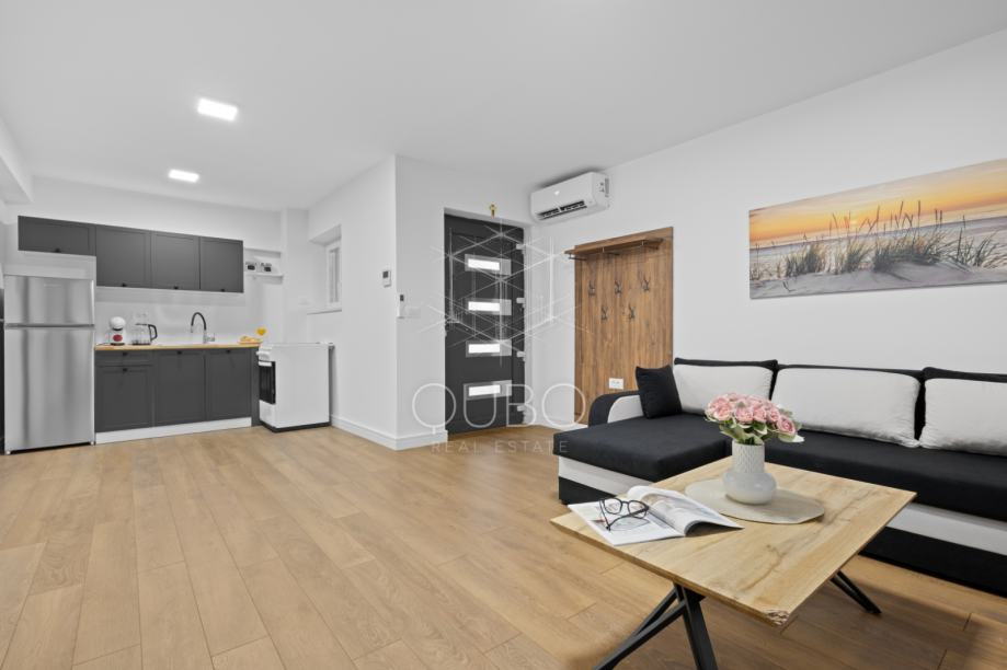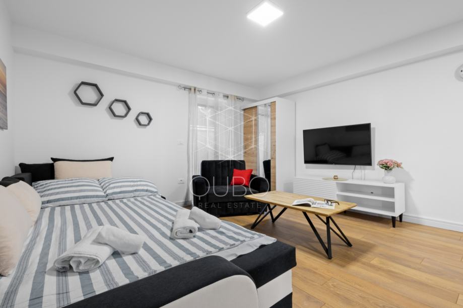 Stan se sastoji od dnevnog boravka s kuhinjom i blagovaonicom u jednoj cjelini, jedne spavaće sobe te kupaonice. Potpuno je klimatiziran i dolazi s osiguranim parkirnim mjestom.